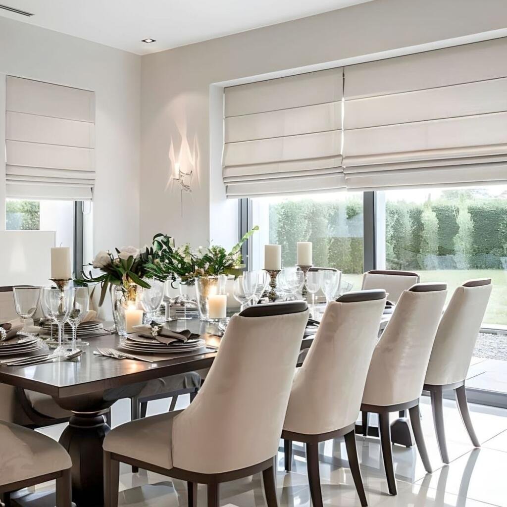 Dining rooms benefit from soft lighting and elegant designs. Our blinds and curtains enhance your dining space without blocking natural light completely.